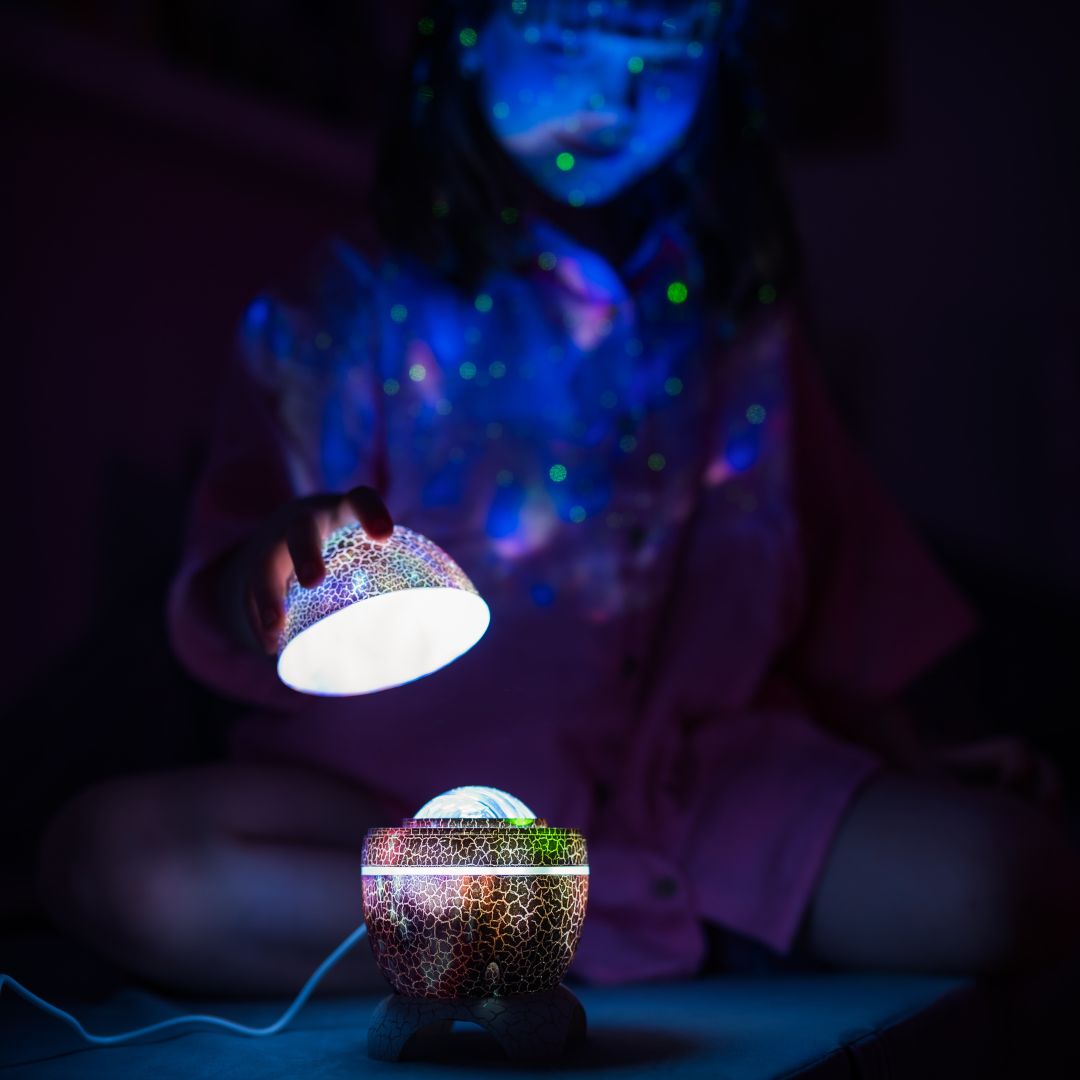 Szukasz prostszego projektora bez sterowania przez aplikację? Świetnie sprawdzi się projektor Moon Bunny MB1. Jeśli potrzebujesz również zintegrowanego głośnika, który odtworzy muzykę lub bajkę z Twojego telefonu, wybierz jeden z modeli Jajo Dinozaura . Jeśli szukasz „inteligentniejszej” wersji projektorów, zdecyduj się na projektor S1 . Jeśli chcesz, aby projekcja również reagowała na rytm odtwarzanej muzyki, wybierz projektor S2. Chcesz to, co najlepsze? Sięgnij po projektor S3, który dzięki zintegrowanej kołysce oferuje najlepszą regulację kąta projekcji z możliwością drobnych zmian nachylenia (projektory S1 i S2 mają 3 poziomy ustawienia). Projektor S3 dostępny jest w kolorze białym i niebieskim, można nim sterować aplikacją oraz asystentami głosowymi, a także dopasowuje projekcję do rytmu muzyki.