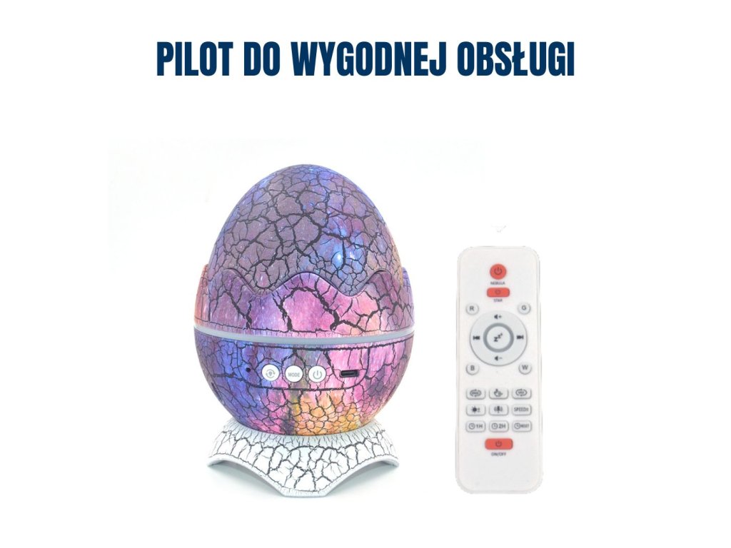 Projektor nocnego nieba w kształcie jajka dinozaura, głośnik Bluetooth, odpowiedni do pokoju dziecięcego, imitujący mgławicę kosmiczną, pilot zdalnego sterowania, zasilanie sieciowe.