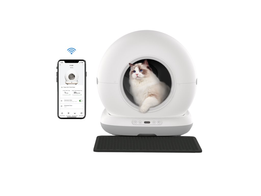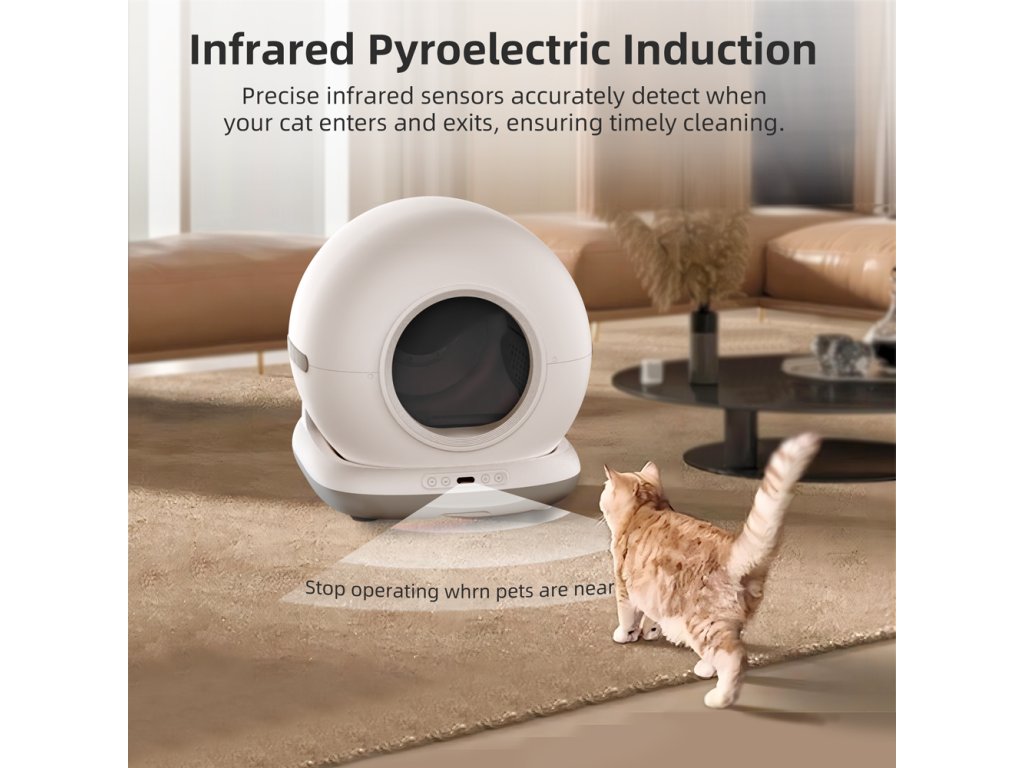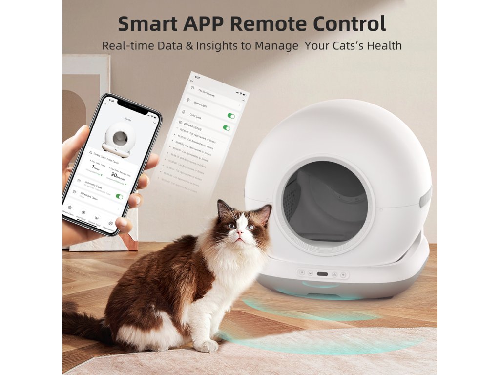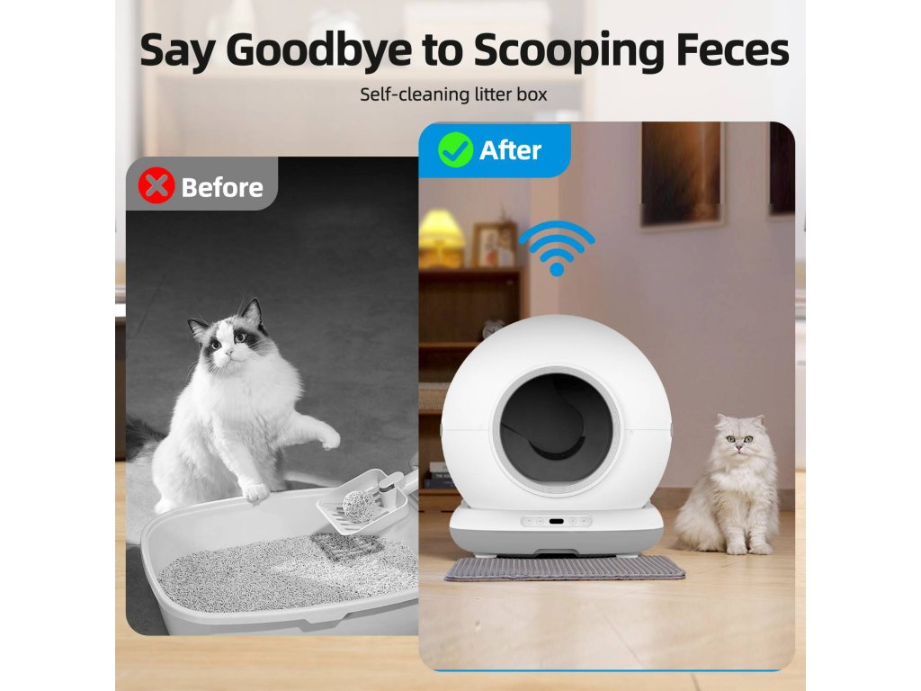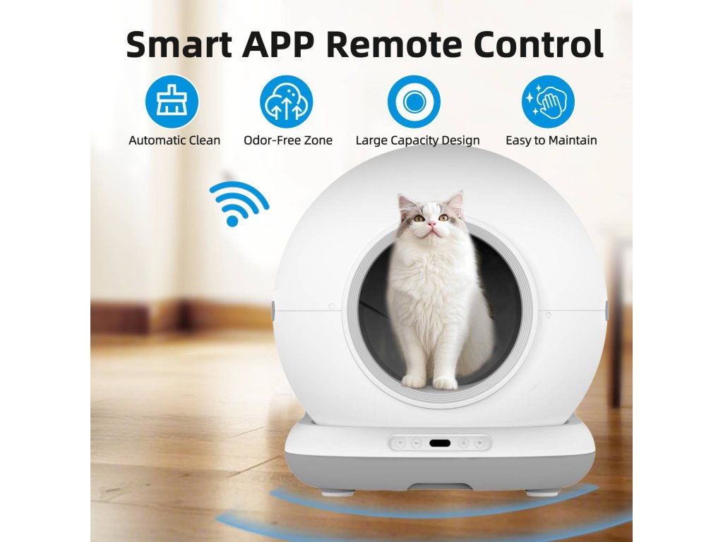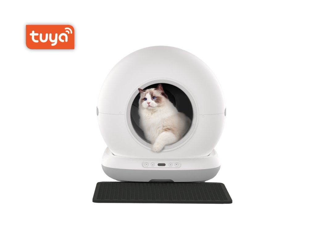 Samoczyszcząca toaleta dla kotów, WiFi 2,4 GHz, aplikacja mobilna Tuya Smart/Smartlife, wymiary 48 x 52 x 50,5 cm, zasilanie sieciowe, pojemność toalety...