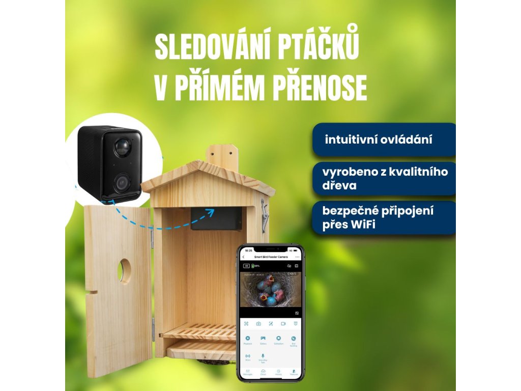 Odkryj świat ptaków z bliska i na żywo z naszym inteligentnym domkiem dla ptaków z wbudowaną kamerą. Ten domek jest idealny dla miłośników przyrody i obserwatorów ptaków. Łączy praktyczną funkcjonalność z nowoczesną technologią, aby zapewnić Ci niespotykany dotąd wgląd w życie ptaków w zaciszu Twojego domu.