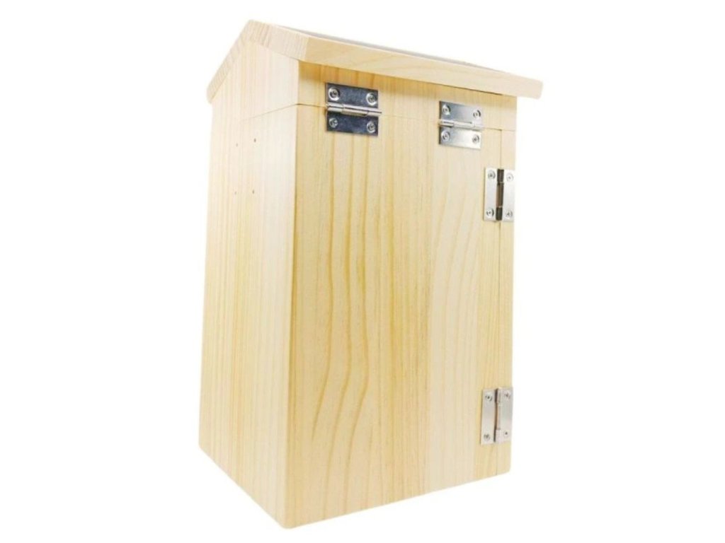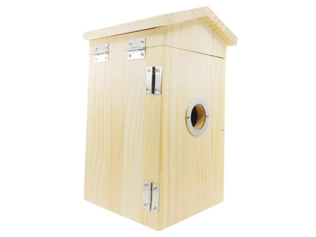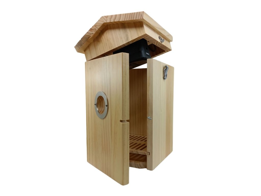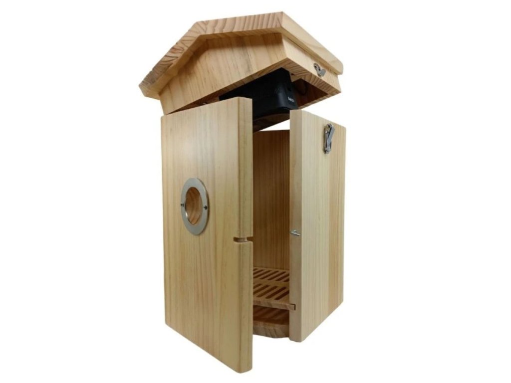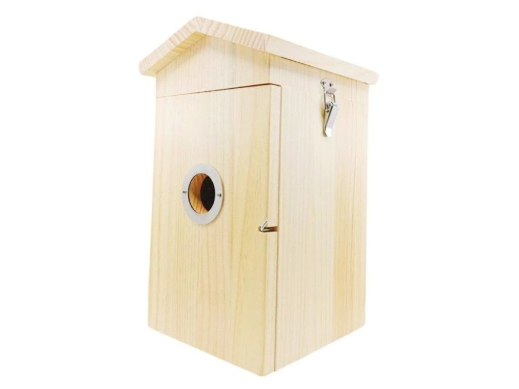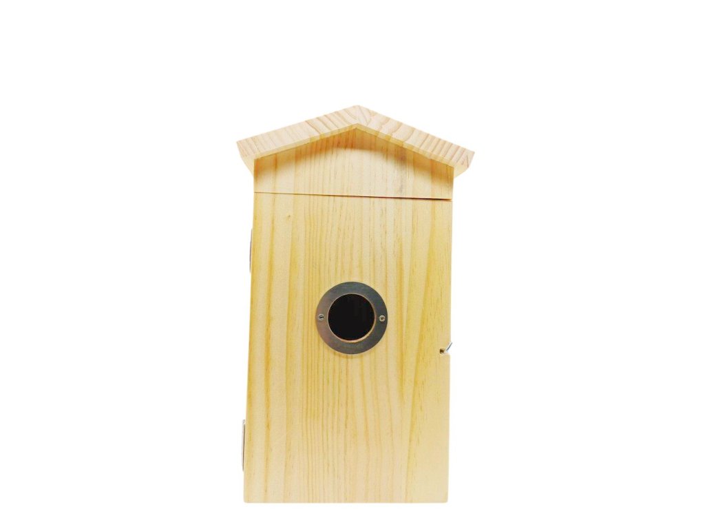 Budka wykonana jest z wysokiej jakości drewna i ma brązowy kolor, który z łatwością wpasuje się w każde otoczenie zewnętrzne. Dzięki uchylnemu dachowi konserwacja i czyszczenie budki są bardzo proste. Budka została zaprojektowana tak, aby wytrzymać różne warunki pogodowe, z temperaturą pracy od -10°C do +55°C i wilgotnością względną od 10% do 90%.