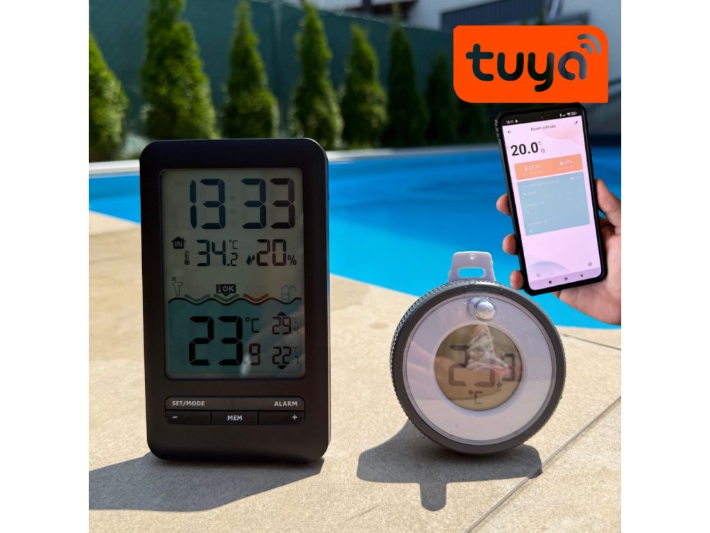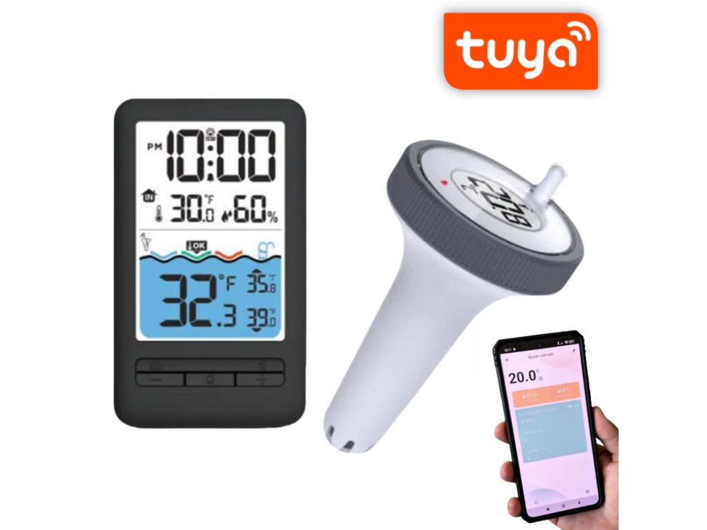 Monitoruj temperaturę wody w swoim basenie lub stawie dzięki inteligentnemu cyfrowemu termometrowi BOT FJ2T Tuya. Ten termometr pozwala monitorować temperaturę wody i temperaturę wewnętrzną z maksymalną dokładnością, a wszystko to w czasie rzeczywistym dzięki zdalnej transmisji danych pomiarowych bezpośrednio na urządzenie mobilne.