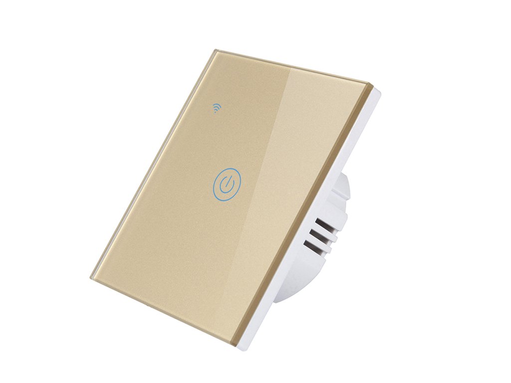 Przełącznik WIFI do oświetlenia i okablowania, jeden przycisk, połączenie WIFI, zasilanie sieciowe, kompatybilny z Asystentem Google i Amazon Alexa, aplikacja Tuya Smart Life na Androida/iOS, kolor złoty