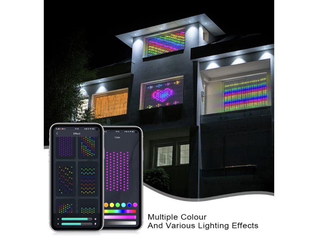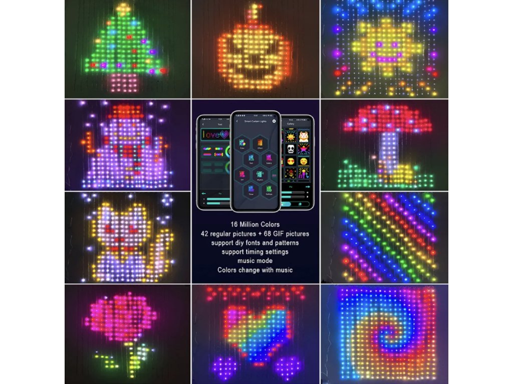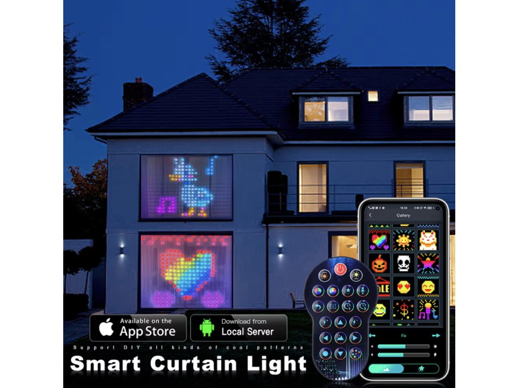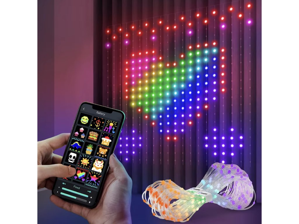 Dzięki wysokiej jakości materiałowi ABS i tworzywu sztucznemu kurtyna jest trwała, a jednocześnie lekka. Sterowanie przez Bluetooth zapewnia wygodną i szybką konfigurację. Wystarczy wybrać kolory, scenę lub pozwolić kurtynie tańczyć w rytm muzyki.