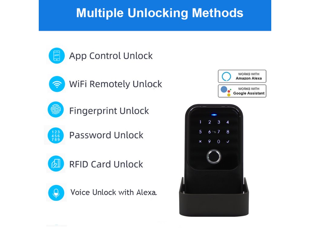 - Odblokowywanie za pomocą odcisku palca, kodu, karty inteligentnej lub telefonu, nawet zdalnie.