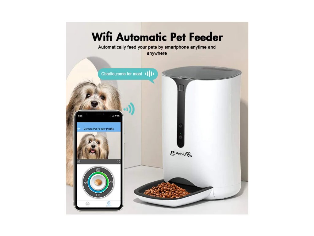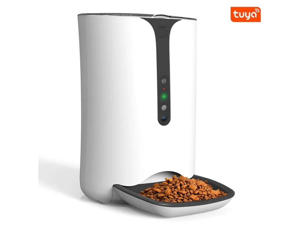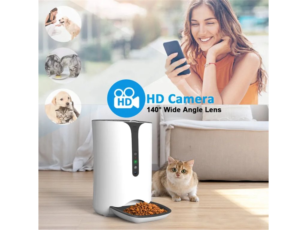 Dozownik karmy zapewniający optymalną porcję karmy, przeznaczony dla psów i kotów, umożliwiający karmienie nawet bez Twojego udziału, WiFi, sterowanie za pomocą aplikacji mobilnej Tuya Smart / Smart Life, kamera HD 140°, aplikacja na iOS i Android, pojemność 6 l, wyłącznie do karmy suchej, kolor biały