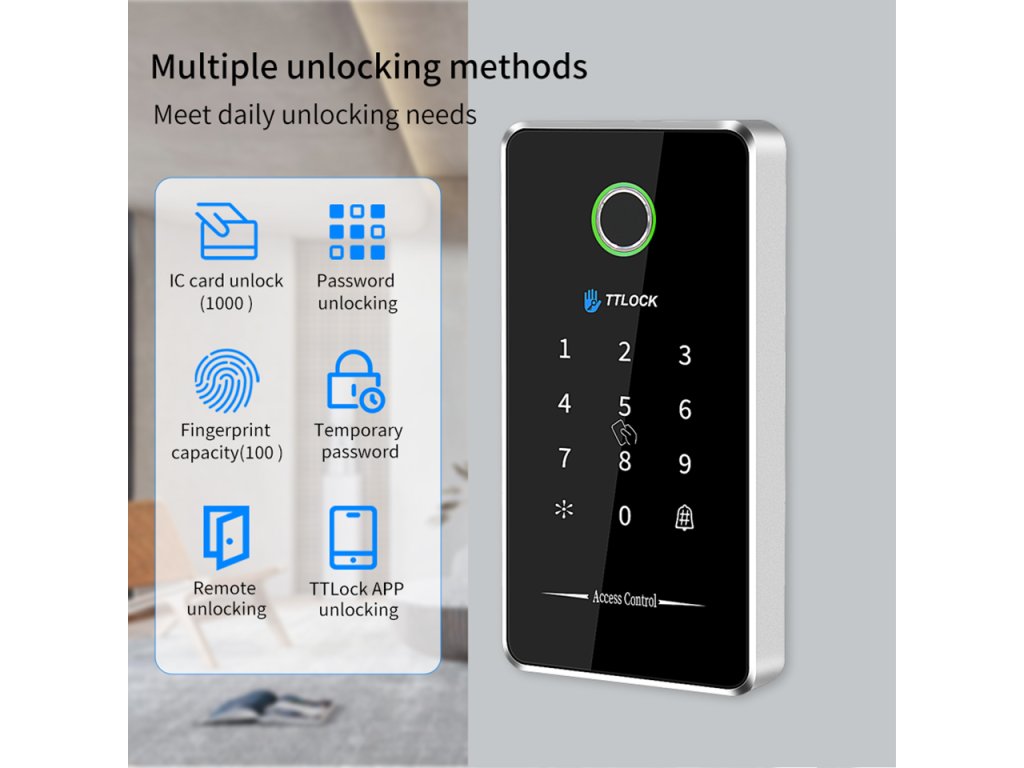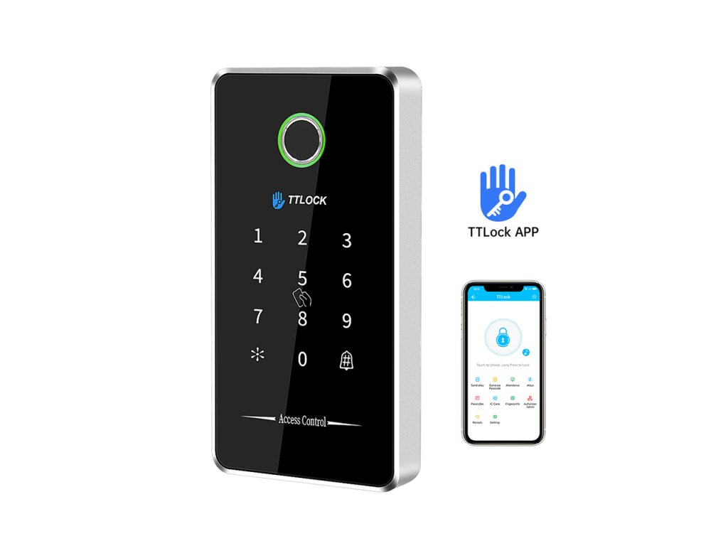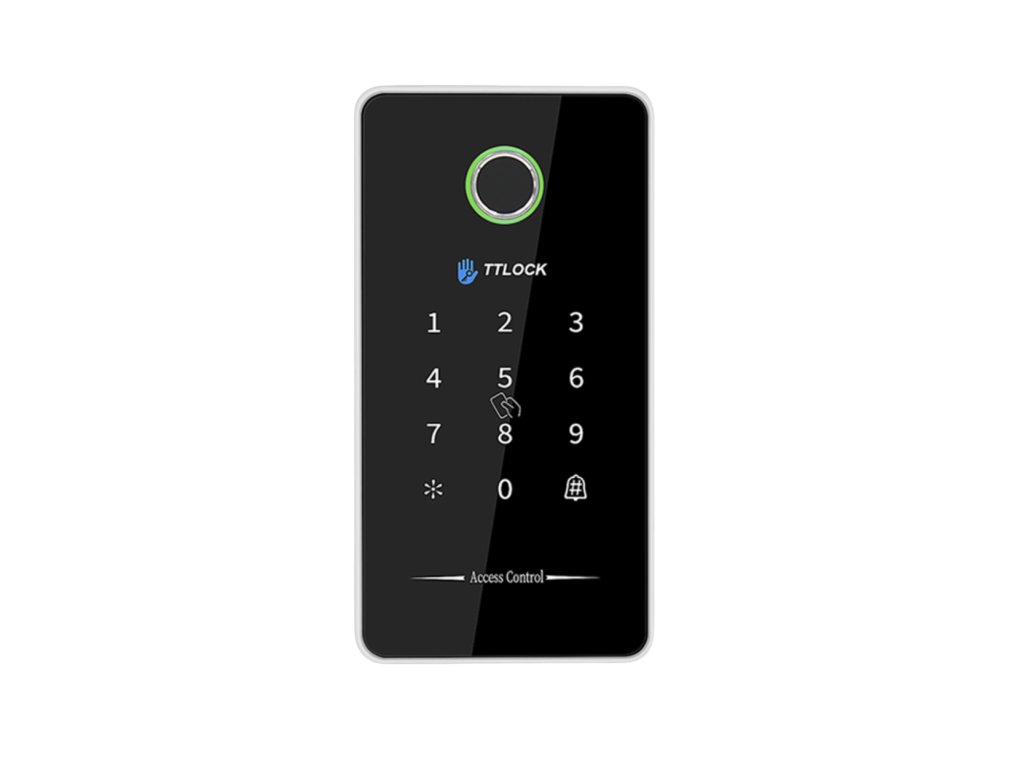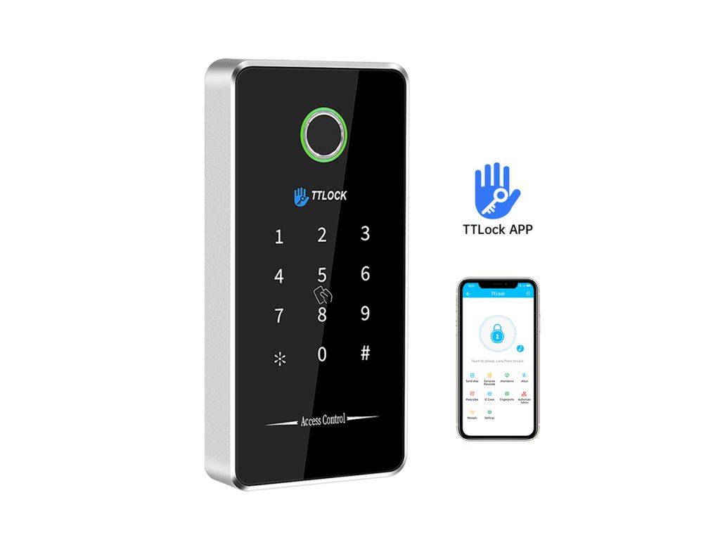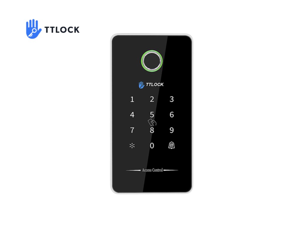 System dostępu z klawiaturą, do TTLock, z czytnikiem linii papilarnych, czytnikiem kart dostępu, Bluetooth, WiFi, odpowiedni do hoteli, pensjonatów i innych obiektów komercyjnych.