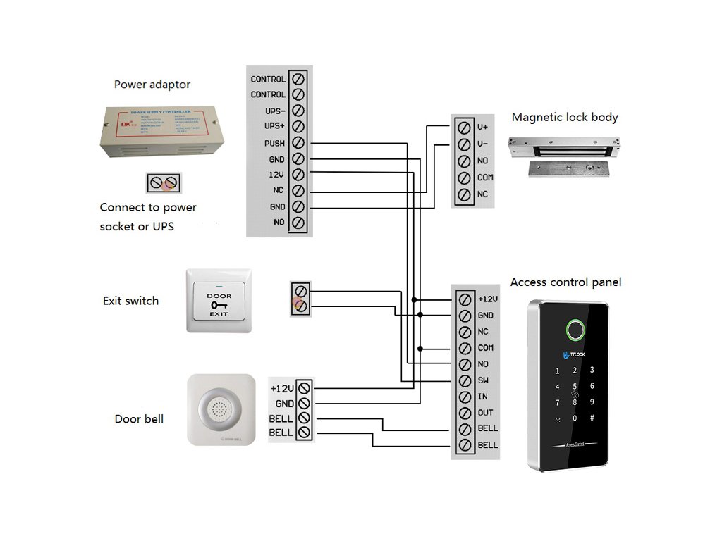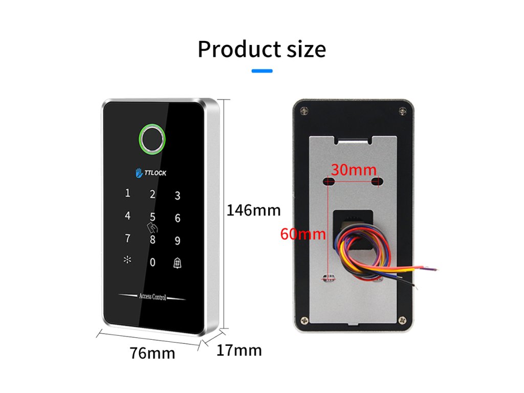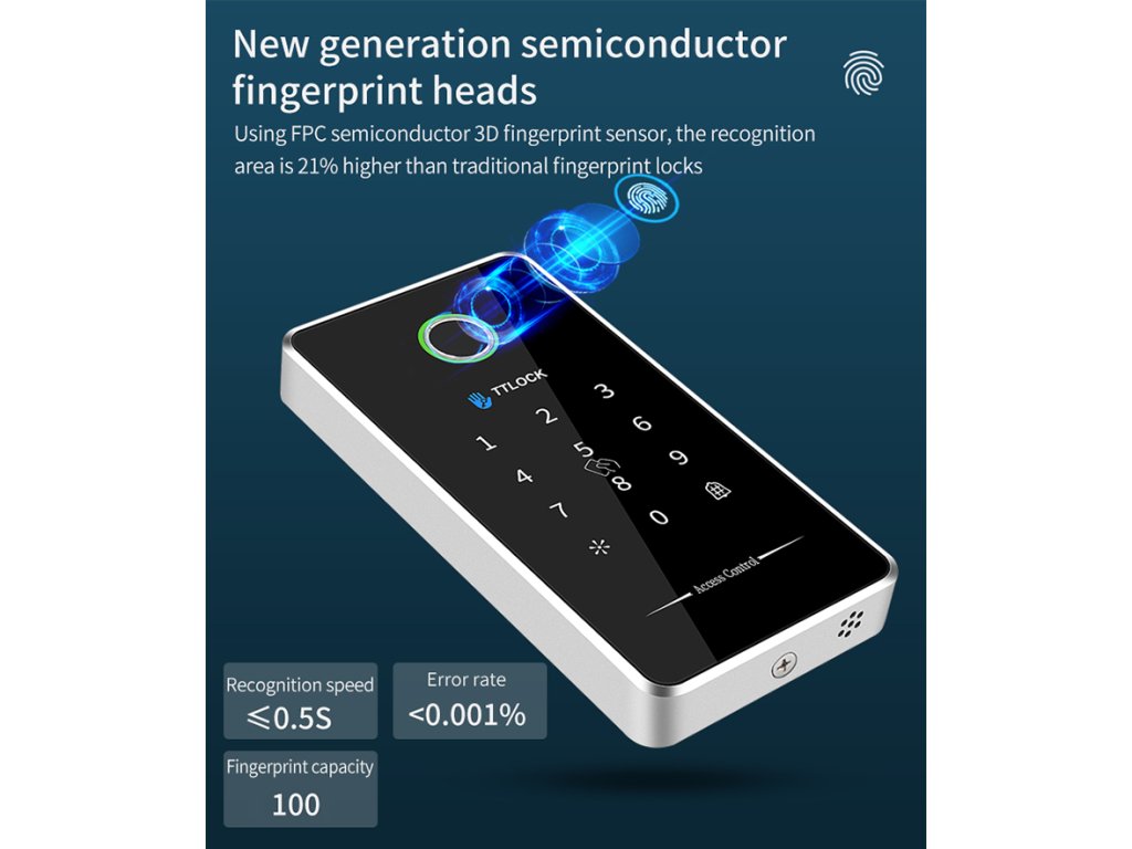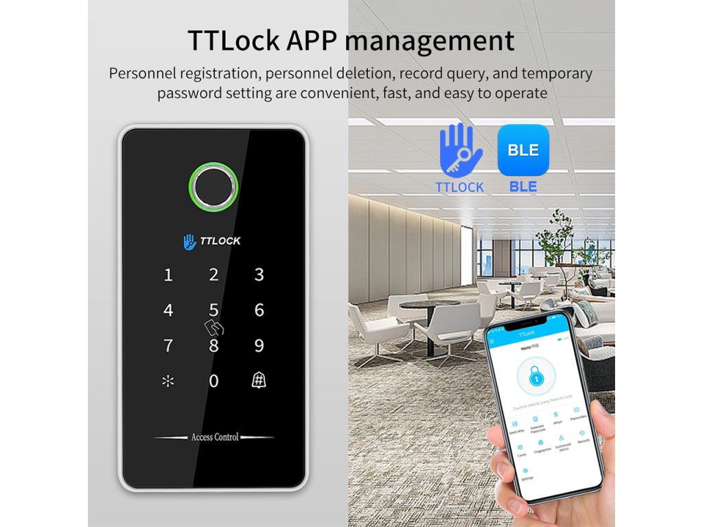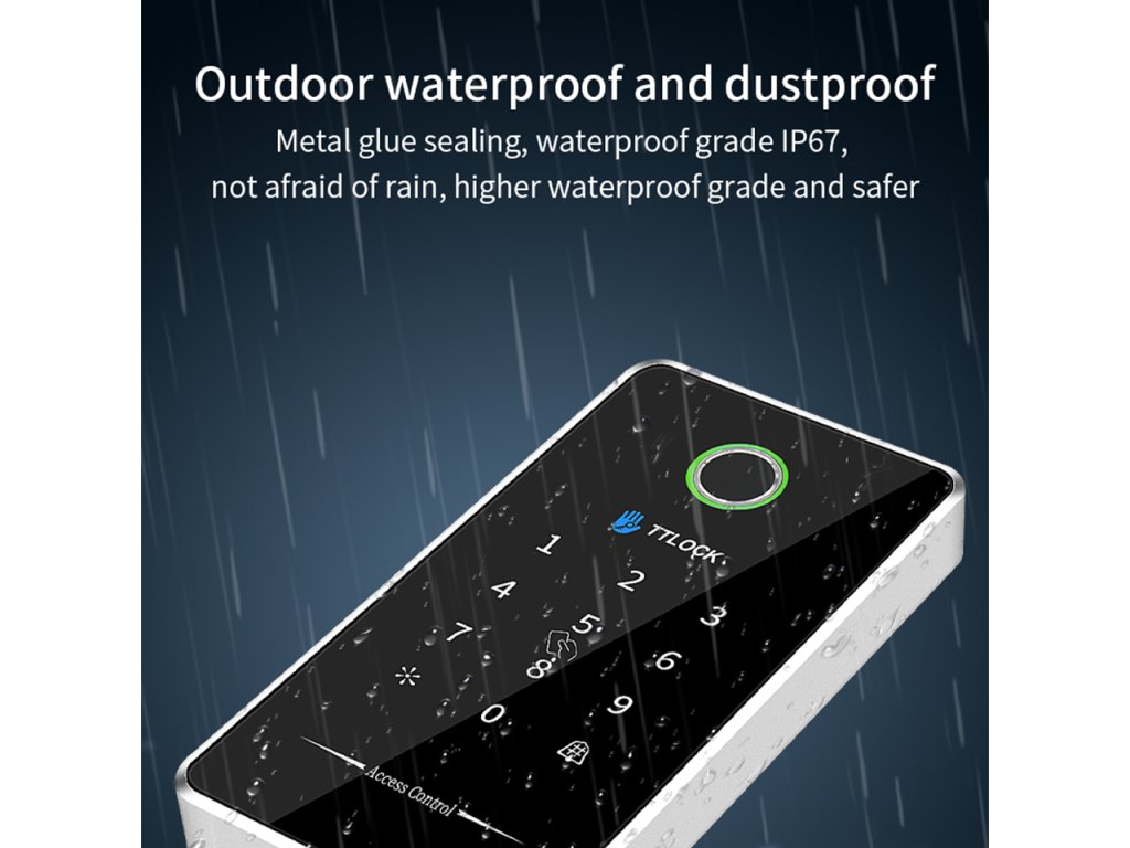 System dostępu z klawiaturą, do TTLock, z czytnikiem linii papilarnych, czytnikiem kart dostępu, Bluetooth, WiFi, odpowiedni do hoteli, pensjonatów i innych obiektów komercyjnych.