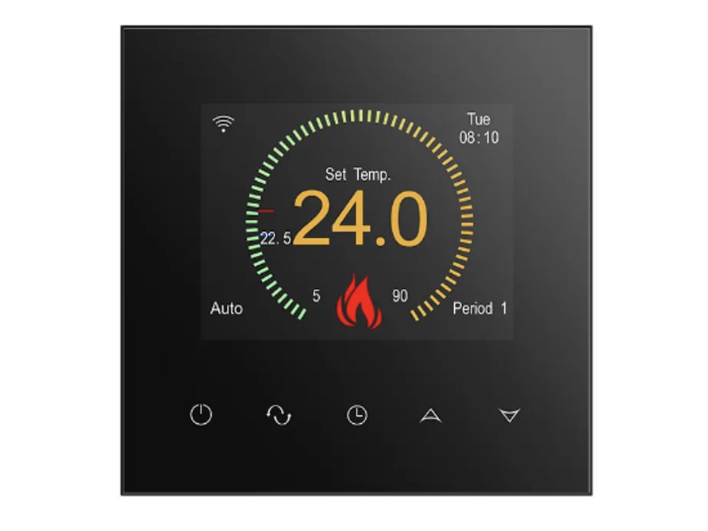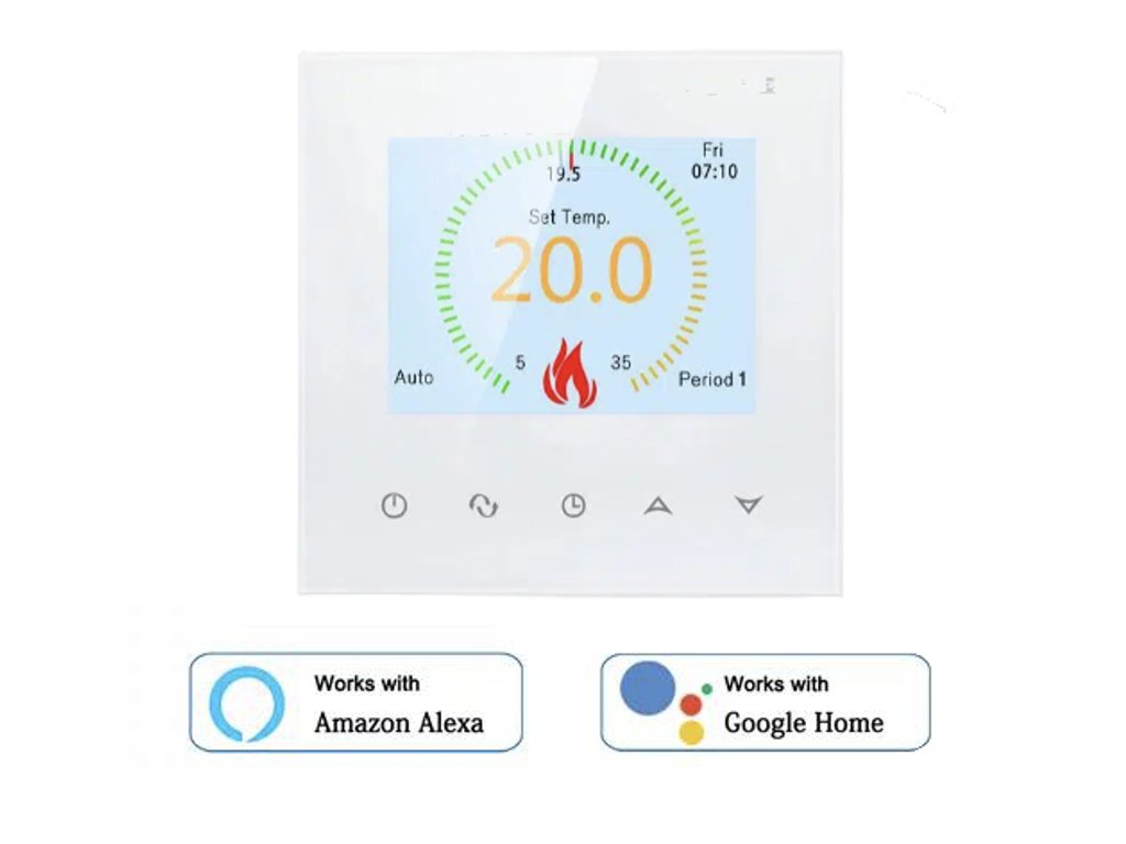 Inteligentny termostat pokojowy, wersja 16A lub 3A, WiFi, sterowanie smartfonem, wyświetlacz dotykowy, możliwość ustawienia temperatury w zakresie 10°C - 30°C, służy do regulacji: systemu grzewczego, kotła, bojlera i innych, aplikacja mobilna Tuya Smart / Smart Life, kompatybilny z Asystentem Google, Amazon Alexa, wersja czarna lub biała.