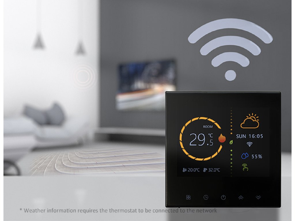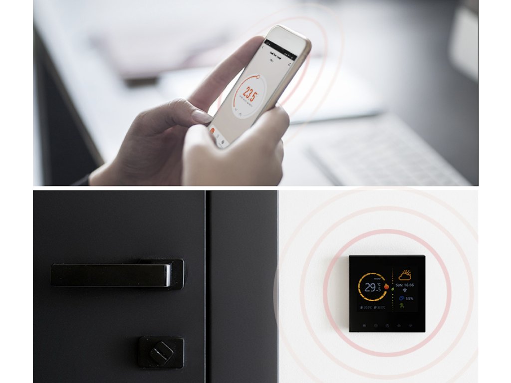 - Zdalne sterowanie przez Wi-Fi - dzięki aplikacji mobilnej Tuya Smart lub Smart Life możesz ustawić temperaturę z dowolnego miejsca w domu, w pracy lub w podróży.