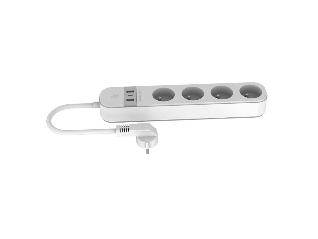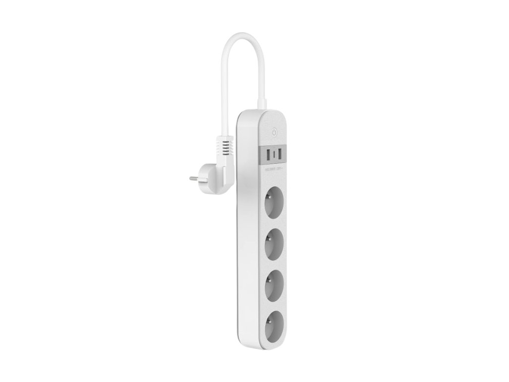 Przedłużacz wyposażony jest w łącznie cztery niezależne gniazda, którymi można sterować niezależnie z poziomu aplikacji. Przedłużacz posiada również dwa porty USB-A i jeden port USB-C.