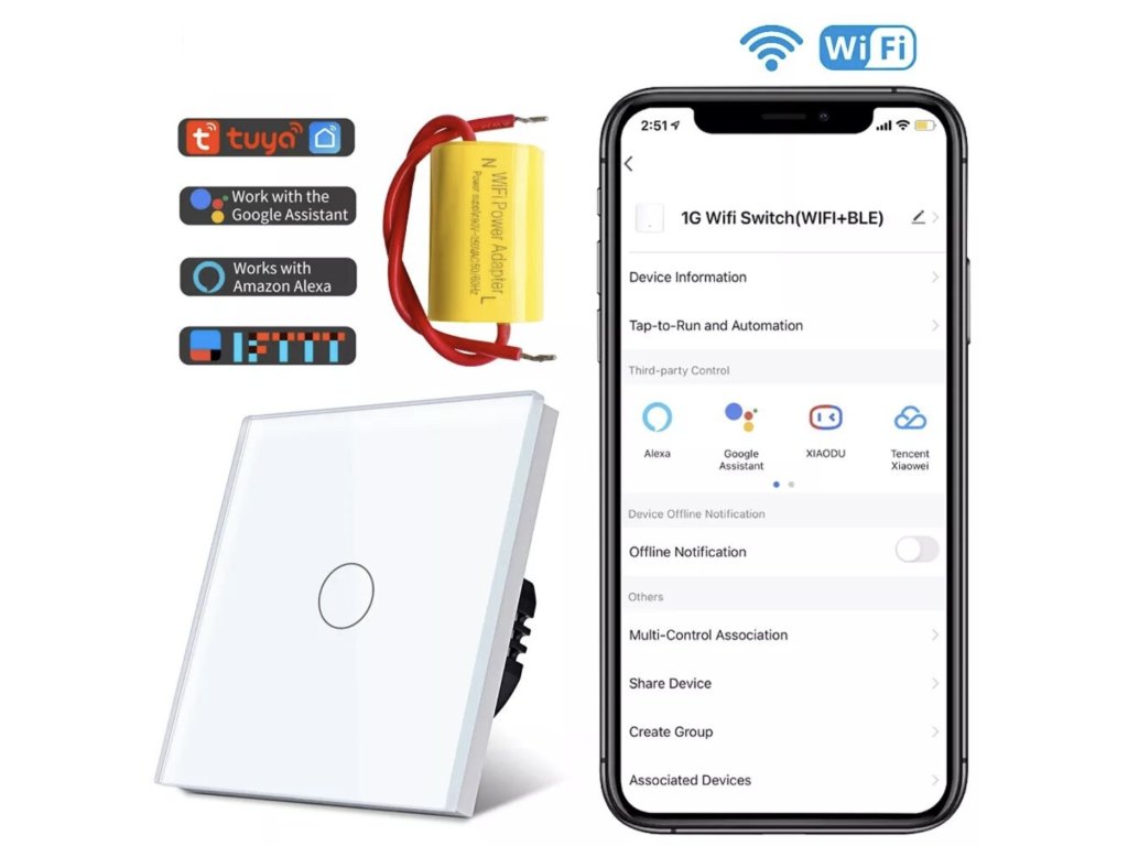 W aplikacji mobilnej możesz ustawić, kiedy oświetlenie ma się automatycznie włączać i wyłączać. Inteligentny włącznik dociera do miejsc objętych zasięgiem sieci Wi-Fi (zazwyczaj całego mieszkania). Oprócz nowoczesnego designu, inteligentny przełącznik będzie kolejnym dodatkiem do Twojego inteligentnego domu.