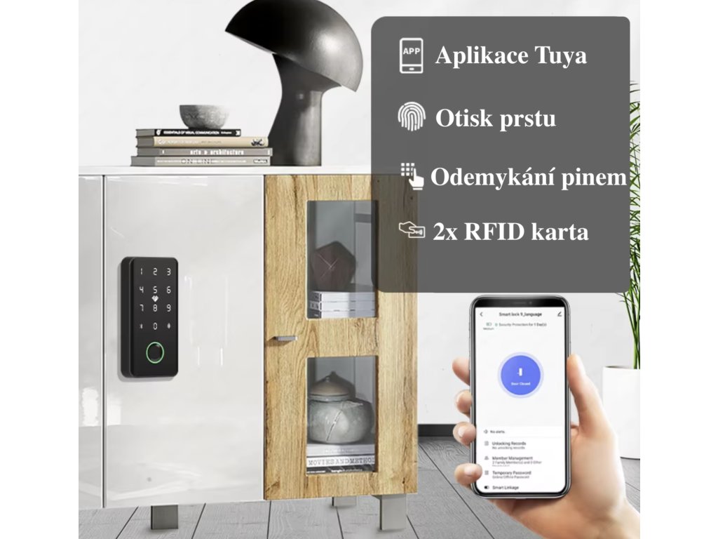 | Možnost odemykání/zamykání: | otisk prstu, PIN, karta, mobilním telefonem |