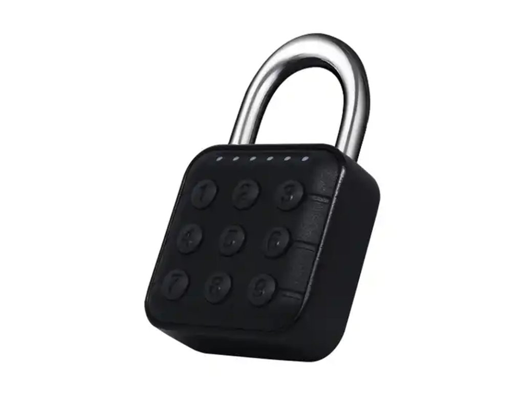 Inteligentna kłódka, Bluetooth, aplikacja mobilna Tuya Smart/Smart Life, odpowiednia do użytku wewnątrz i na zewnątrz, zasilana bateryjnie, wykończenie w kolorze czarnym.