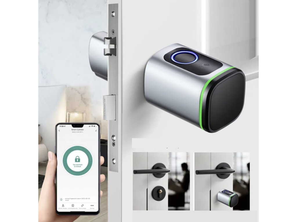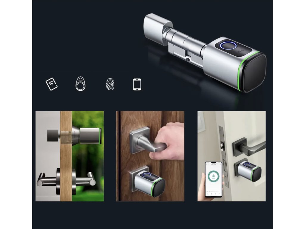 Dzięki temu inteligentnemu zamkowi możesz łatwo zabezpieczyć drzwi swojego mieszkania, biura lub magazynu i kontrolować dostęp na kilka różnych sposobów. Wystarczy wybrać tę, która najbardziej Ci odpowiada – odblokowanie za pomocą technologii Bluetooth w telefonie komórkowym z systemem Android/iOS, zdalne odblokowanie za pomocą bramki Wi-Fi (należy ją zakupić osobno) lub odciskiem palca.