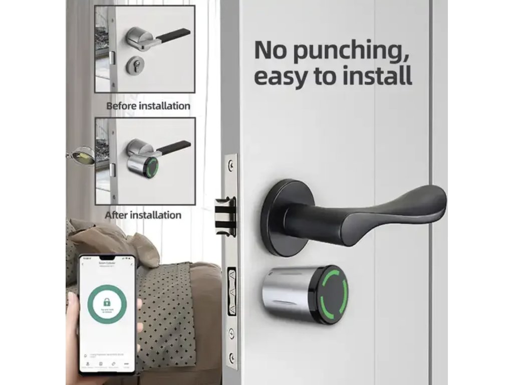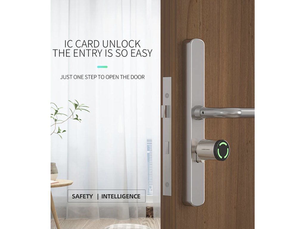 Dzięki temu inteligentnemu zamkowi możesz łatwo zabezpieczyć drzwi swojego mieszkania, biura lub magazynu i kontrolować dostęp na kilka różnych sposobów. Wybierz tę, która najbardziej Ci odpowiada – odblokowywanie za pomocą technologii Bluetooth w telefonie komórkowym z systemem Android/iOS, zdalne odblokowanie za pomocą bramki Wi-Fi (należy ją kupić osobno), karty IC i NFC.