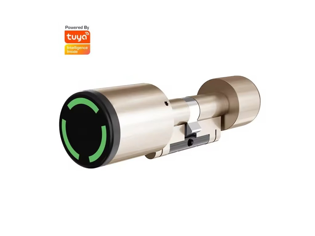 Inteligentny zamek, odpowiedni do użytku wewnętrznego i zewnętrznego, stopień ochrony IP54, do drzwi o grubości 6-6,5 cm, w tym okucia, Bluetooth, WiFi, sterowanie za pomocą aplikacji Tuya Smart / Smart Life, kolor miedziany.