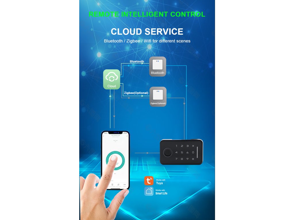 - Połączenie Bluetooth i zarządzanie mobilne – zdalne sterowanie i zarządzanie zamkiem za pomocą Tuya Smart/Smart Aplikacja mobilna Life.