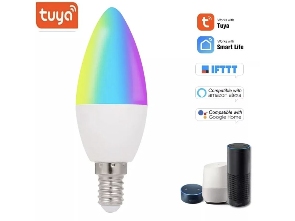 Inteligentna żarówka LED, strumień świetlny 450 lm, RGB, E14, Zigbee, aplikacja mobilna Smart Life / Tuya Smart, kompatybilna z Asystentem Google lub Amazon Alexa, żywotność do 50 000 godzin.