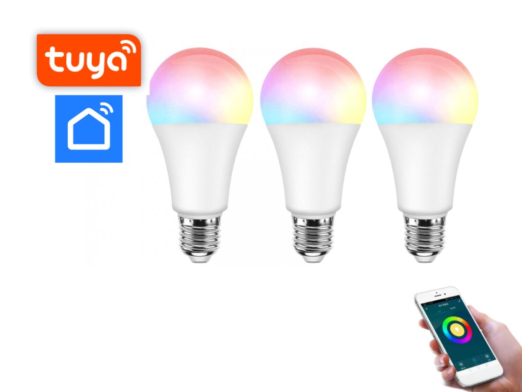 Zestaw 3 inteligentnych żarówek LED, WIFI, strumień świetlny 800 lm, 7 W, gwint E27, barwa światła 3000 K, kompatybilność z Asystentem Google i Amazon Alexa, sterowanie za pomocą aplikacji Smart Life, regulacja jasności światła