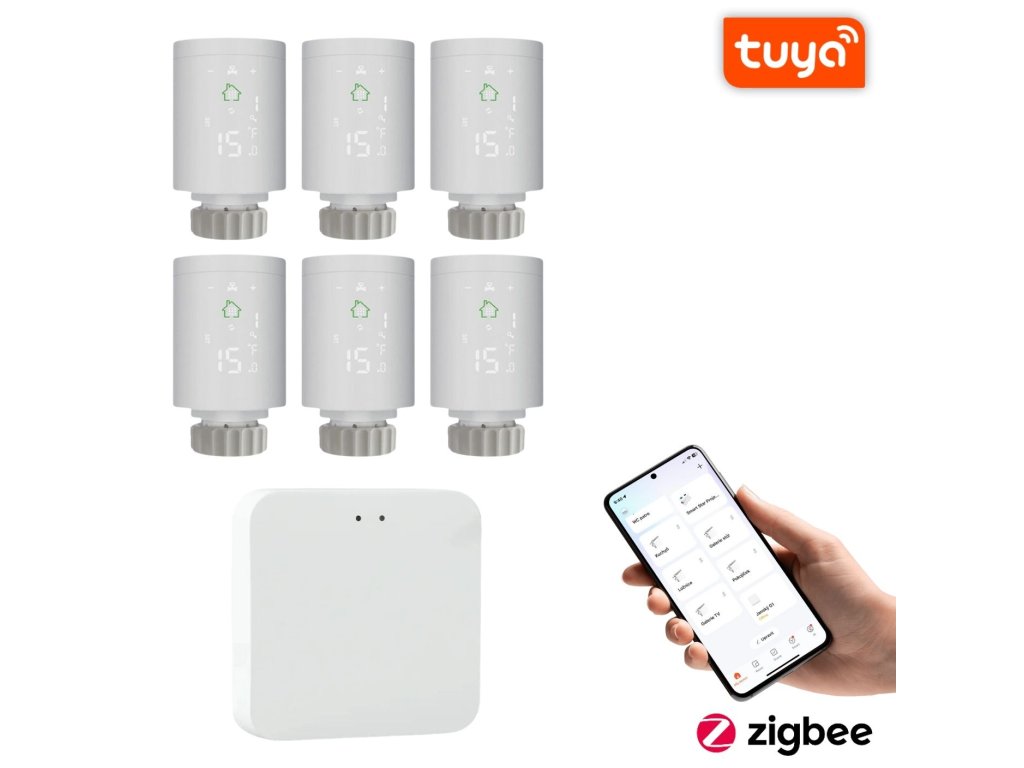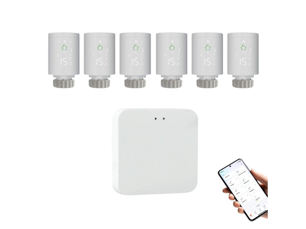 BOT ZESTAW 6+1 Smart Zigbee/WiFi głowica terbridgeatyczna TH5 Tuya + gateway