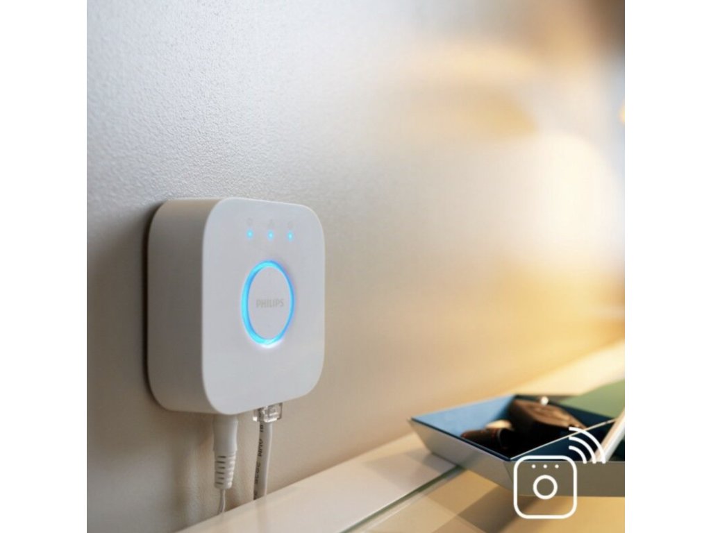 Mostek Philips Hue Bridge 2.0, który jest używany w całym systemie inteligentnym , umożliwiając nieograniczone konfigurowanie i sterowanie oświetleniem LED Hue, taśmami LED i żarówkami LED Hue. Dzięki aplikacji mobilnej Philips Hue na smartfonie lub tablecie możesz łatwo dostosować intensywność, kolor lub światła z regulacją temperatury oraz harmonogramy oświetlenia, synchronizując oświetlenie z filmem, muzyką lub grą komputerową.