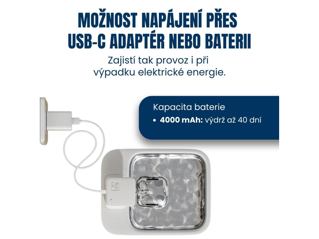 ✔ Brak kabla zasilającego – praca na baterii bez przeszkadzających i kuszących przewodów (czas pracy baterii do 40 dni)