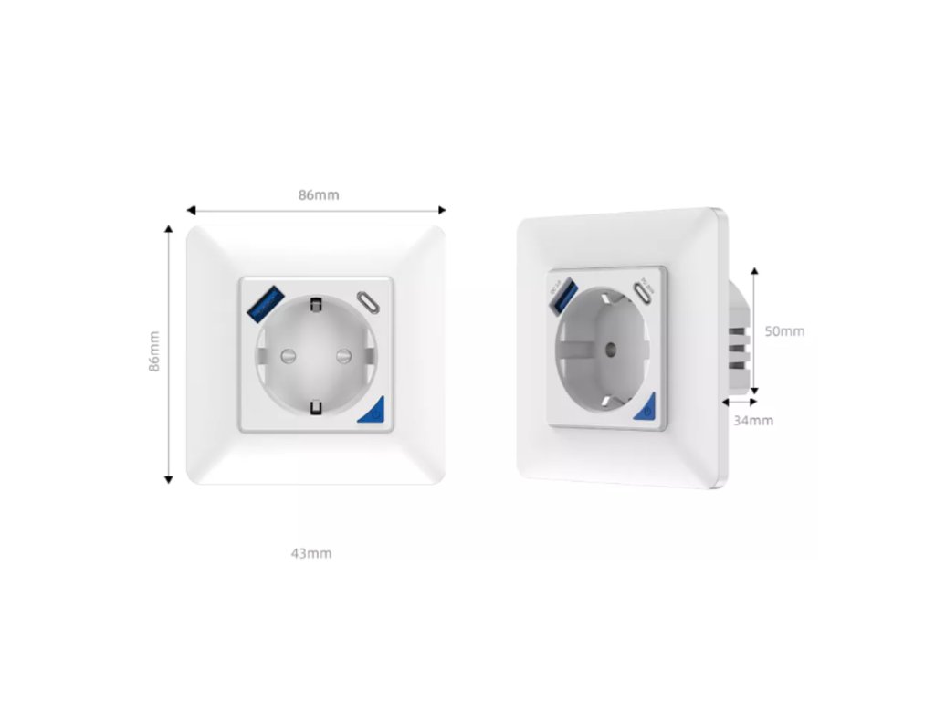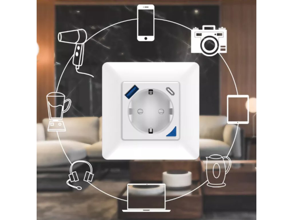 Gniazdo posiada również 2 porty USB (USB 3.0 i USB typu C), za pomocą których można ładować nie tylko telefony komórkowe. Obsługiwane jest szybkie ładowanie 3.0+/3.0/2.0. Kompatybilny z USB 3.0, USB-C, USB BC 1.2 DCP (Apple).
