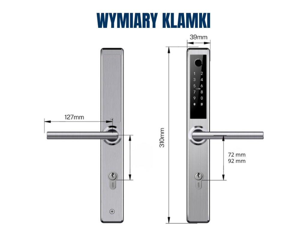 - ✔ Warianty klamki: rozstaw zamka 72 mm, 85 mm, 90 mm lub 92 mm, także wariant bez wkładki cylindrycznej