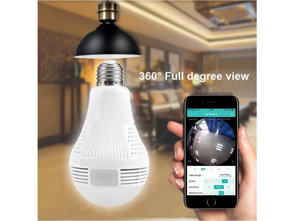 Inteligentna żarówka z kamerą 360°, Wi-Fi, komunikacją dwukierunkową i sterowaniem bezdotykowym