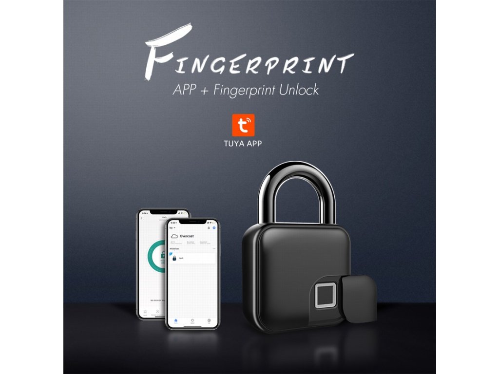 Inteligentna kłódka, Bluetooth, czytnik linii papilarnych, sterowanie aplikacją TUYA Smart/Smart Life, czarna