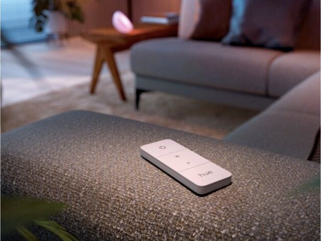 Pilot zdalnego sterowania z Philips Hue Dimmer Switch do łatwego bezprzewodowego włączania/wyłączania lub płynnej zmiany natężenia światła na 10 diod LED Hue światła lub żarówki LED Hue bez konieczności podłączania do mostka Hue o zasięgudo 12 m wewnątrz , korzystając z połączenia oświetleniowego ZigBee (protokół IEEE 802.15.4). W zestawie znajduje się uchwyt ścienny i bateria guzikowa CR2032 o minimalnej żywotności 2 lat.