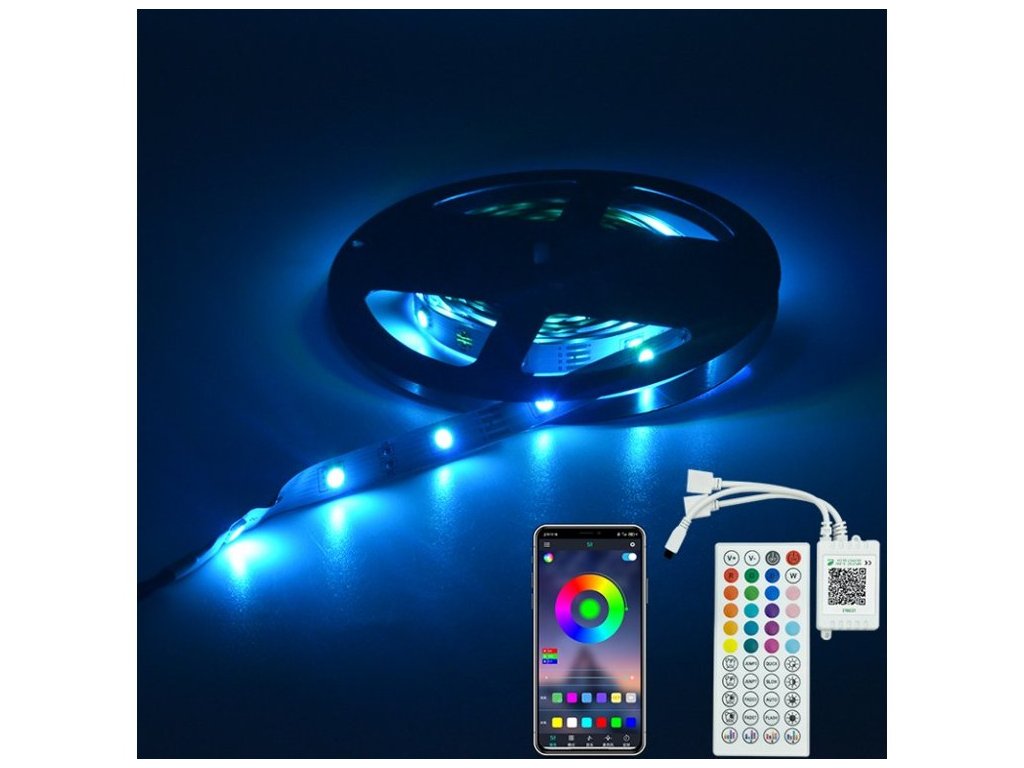 Dekoracyjna inteligentna taśma LED, do użytku wewnątrz i na zewnątrz, długość 5 metrów, Bluetooth, obsługiwane systemy operacyjne: Android i iOS, aplikacja mobilna Smart Life