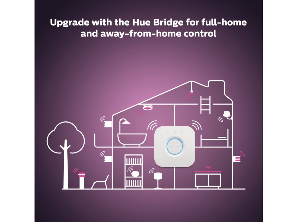 Możesz łatwo połącz go przez Bluetooth lub przez mostek Philips Hue Bridge (nie znajduje się w zestawie), który zapewni Ci dodatkowe opcje, takie jak sterowanie głosowe ustawianie harmonogramów oświetlenia dziennego i nocnego. Do aplikacji Hue Bluetooth można dodać jednocześnie do 10 lamp.